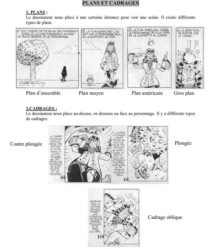 Pour rendre plus dynamique la lecture d'une planche de bande-dessinée et donner plus d'expressivité au récit, le dessinateur compose sa page en faisant varier les cadrages et les plans.