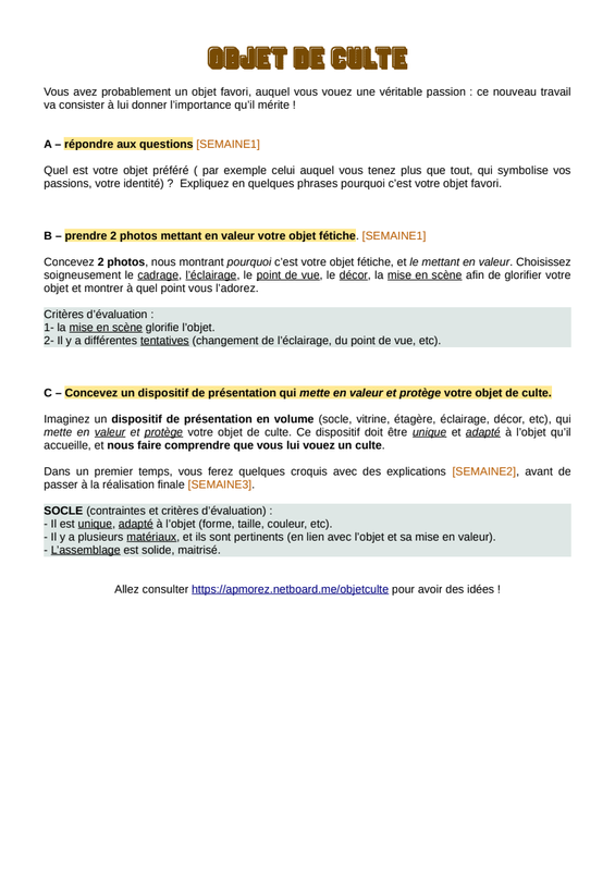 Objet De Culte Questions Élèves 1