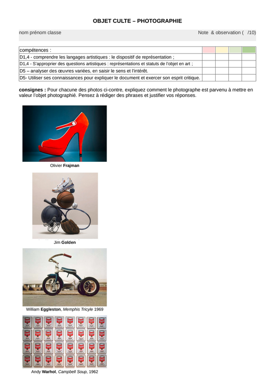 1- Une première partie où vous devez réaliser des photos mettant en valeur votre objet fétiche.