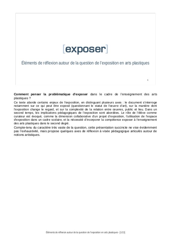 Éléments De Réflexion Autour De La Question De L’Exposition