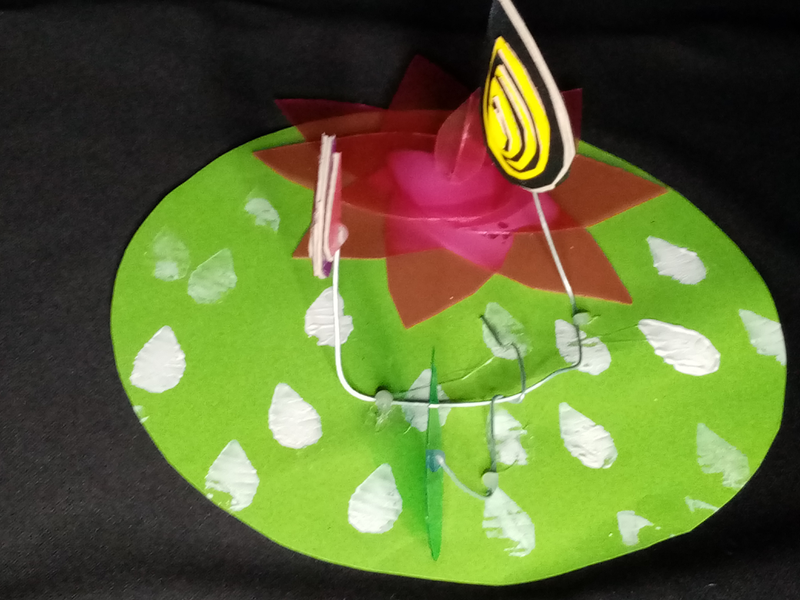 Il s'agissait de découvrir les fondamentaux du vocabulaire des arts plastiques : forme, couleur, matière, lumière, et voir comment une création peut évoluer : un dessin… qui devient une sculpture… puis une photo !